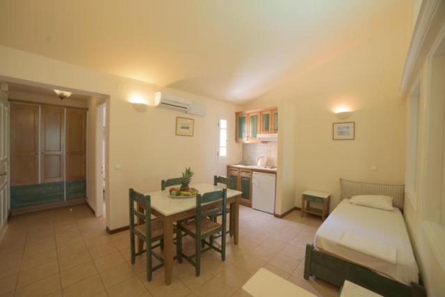 Обширная зеленая территория, выбор просторных комфортабельных номеров с кухней, ресторан, бары, бассейн, детская площадка, интернет, качественное обслуживание. Поблизости расположены магазины, кафе, бары, таверны.
