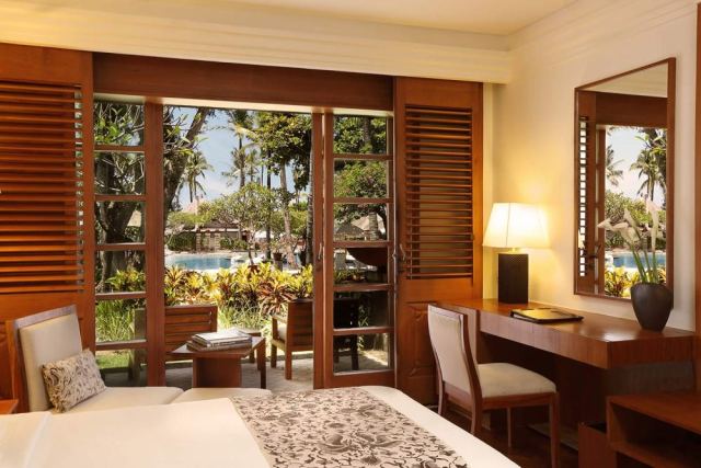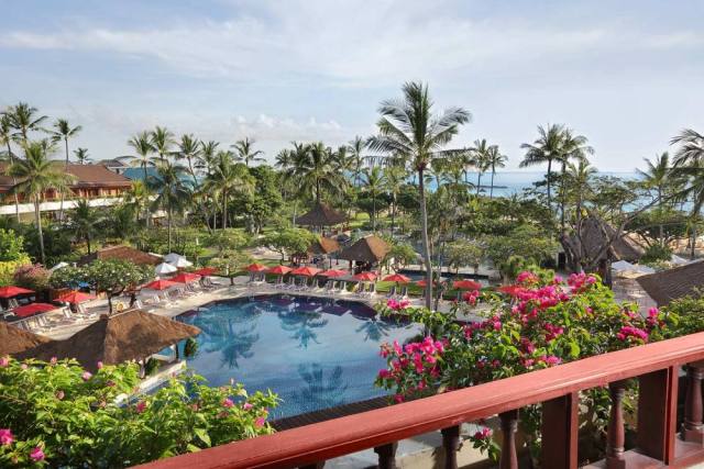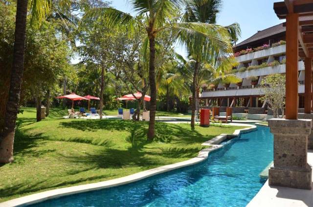 Отель расположен в южной части острова на 9 га тропического сада. Один из самых популярных отелей, который располагает одним из лучших пляжей на побережье Нуса Дуа.