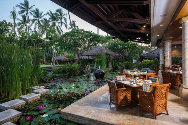 ресторан индонезийской кухни с панорамным видом на море Raja’s Balinese Cuisine, международной кухни Wedang Jahe, итальянской кухни Sandro’s Pizzeria, азиатской кухни на берегу океана Maguro Asian Bistro, морепродуктов Chess Restaurant, бар с подводными сидениями, лобби-бар с видом на тропический сад