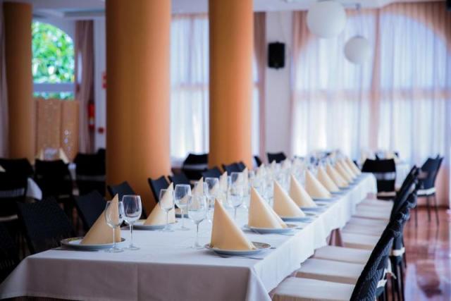 50 номеров; открытый и закрытый бассейны, парковка (€), лифт, бесплатный Wi-Fi, Room Service, круглосуточная стойка регистрации гостей, сад, сейф (на стойке регистрации)