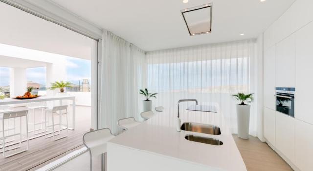 ванная комната с косметическими принадлежностями, фен, кондиционер, кухонный уголок, гостиная зона, ТВ, панорамные окна, терраса