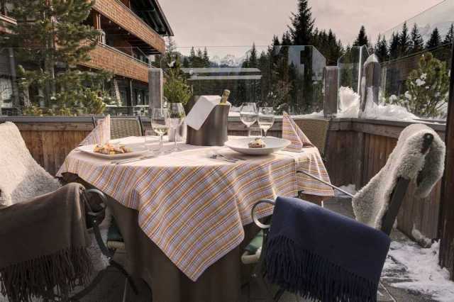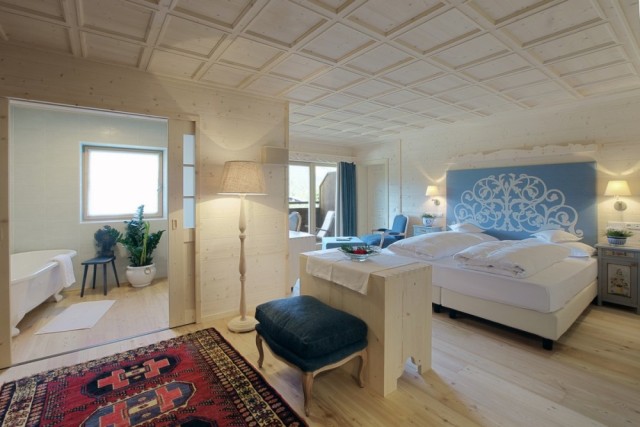 Junior Suite (33 м2): просторный номер с одной двуспальной кроватью или двумя односпальными, балкон или веранда с видом на Доломиты, есть возможность поставить дополнительную кровать (по запросу); максимальное размещение 2 взр. или 2 взр. и 1 ребенок