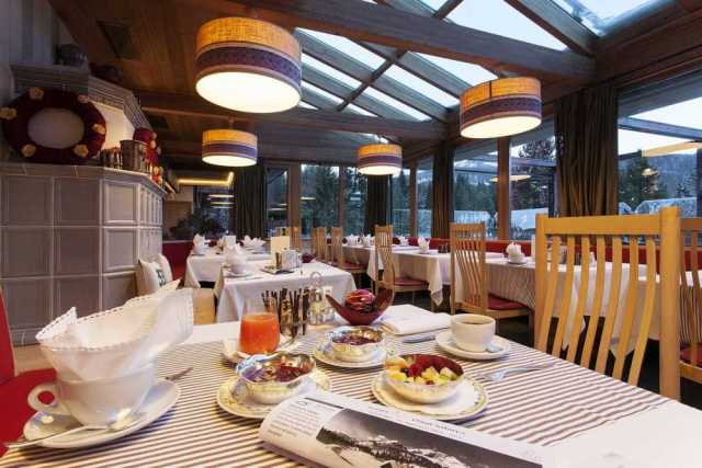 ресторан La Siriola, ресторан на террасе La Terrazza (обед и ужин - классические блюда, говядина тартар с гарниром, сэндвичи, клецки, ветчина, морской окунь, моцарелла и помидоры, барбекю), ресторан Salares (завтрак из 140 различных продуктов и ужин по меню из 4 блюд на выбор), Wine Bar Siriola (аперитив, зал для курения), Wine Bar Siriola (350 наименований вин), Chocolate (более 40 видов шоколада)