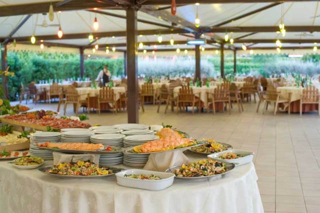 3 бара, (у бассейнов и на пляже), 3 ресторана: Le Piramidi, Le Pagode и Beach on Club (на пляже)