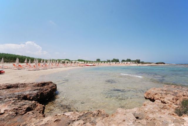 200 м от отеля, собственный, песчаный, скалистый при входе в море; пляжные услуги включены в стоимость (2 линия пляжа и далее от моря)