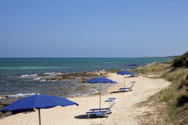 собственный, частично скалистый, частично песчаный; в стоимость размещения включены 2 лежака и 1 зонтик; 1,5 км от отеля бесплатные песчаные пляжи заповедника Torre Gauceto (действует бесплатный шаттл по установленному времени)