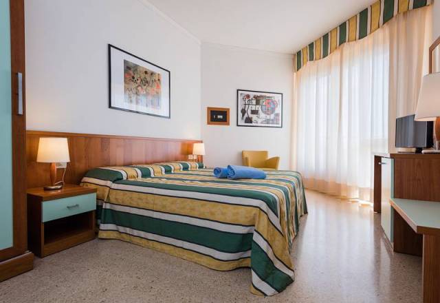 102 номера; 2 лифта, холл-гостиная, ТВ-зал, сад, открытый бассейн с гидромассажной зоной для детей и водными горками, полотенца у бассейна, терраса с зонтиками и шезлонгами и видом на море, кондиционер, wi-fi в общественных зонах отеля, 10% скидка при оплате услуг картой (Europa Card), услуги прачечной 4€/ 1 жетон, парковка