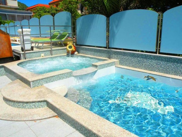 41 номер в главном корпусе и 27 номера в дополнительном; 2 лифта, бассейн с пресной водой, детской бассейн, джакузи (с мая по октябрь), шезлонги и зонтики у бассейна, солнечная терраса, сад, Интернет, wi-fi, ТВ зал, парковка (€)