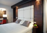 21 номер, включая 2 двухуровневых номера с сауной, 2 номера с мини-тренажерным залом, а также 3 номера с видом на стеклянный купол галереи; в номерах преобладают бежевые, оранжевые и красные тона; терраса, Room Service 24 ч., парковка