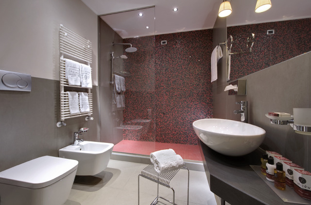 ванная комната, фен, телефон, радио, спутниковое ТВ, мини-бар, сейф, кондиционер, балкон с видом на Эуганские холмы или бассейн