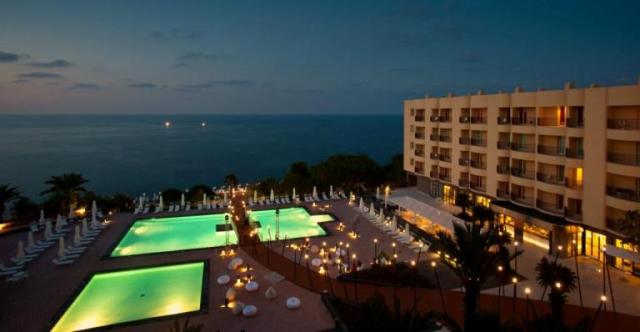 340 номеров; 3 бассейна: детский, взрослый (пресная вода), бассейн у моря (с морской водой), wi-fi, парковка (€)