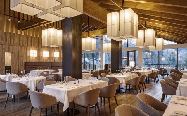 ресторан с видом на ледник Brenva, лаунж-бар с панорамной террасой, бар для курения сигар