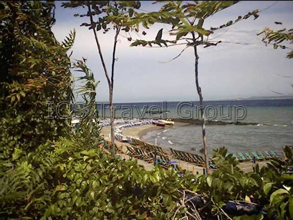 у отеля договор с частным пляжем Bagno Francesca; песчаный, 50 м через дорогу от отеля; лежаки и зонтики (€)