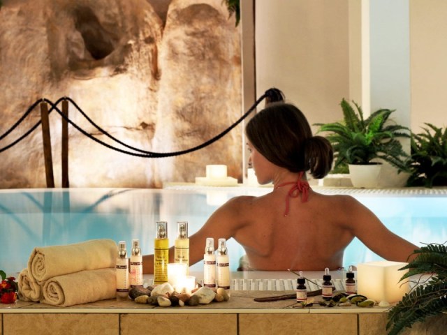 закрытый бассейн с подогреваемой морской водой и просторными сиденьями с гидромассажем, эмоциональный душ, зону термариума с ароматизированной турецкой баней, финскую сауну и травяные чаи. Центр также предлагает 5 массажных кабин, салон красоты и фитнес-зал с кардио-оборудованием марки Techno Gym.