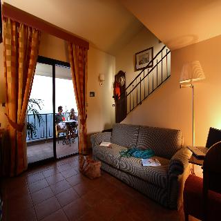 Deluxe: номера с видом на побережье Таормины; двухуровневый номер со спальной зоной, гостиная с односпальной кроватью; максимальное размещение 3 человека