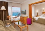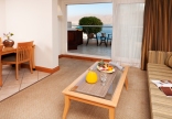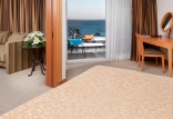 ванная комната, фен, халаты и тапочки (от 7 ночей по просьбе туристов), раскладывающая софа, кондиционер, кабельное LCD ТВ, радио, телефон, мини-бар, сейф, мини-кухня, набор для приготовления чая/ кофе, балкон с видом на бассейн и море