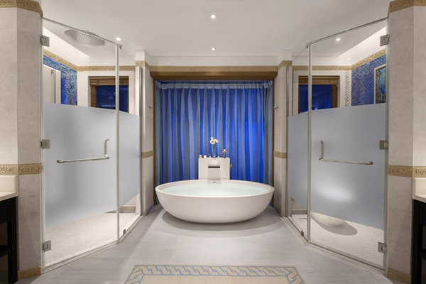 Junior Suite (85 м2): номера, расположенные в 3-х этажных корпусах с видом на море, большая двуспальная кровать king size, гостиная зона (зональное разделение на гостиную и спальню - без двери), гардеробная, ванная комната с душем, ванной и двумя раковинами, балкон со столом, стульями и шезлонгом, док-станция для iPod; максимальное размещение 3 взр. или 2 взр. и 1 ребенок