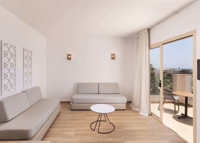 One Bedroom Apartment With Side Sea View (44 м2) - Апартаменты с одной спальней: гостиная открытой планировки с двумя односпальными кроватями и диванами-кроватями, балкон или терраса с боковым видом на море. Максимальное размещение: 4 взрослых или 2 взрослых и 2 детей