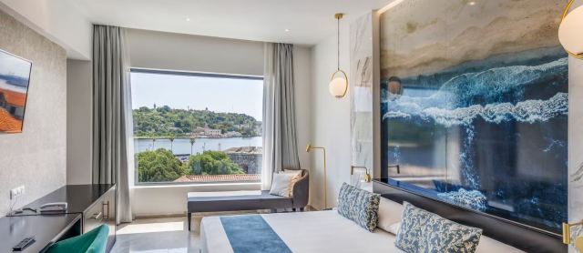 The Townhouse Suite Bay View (66 м2) - просторный номер с прихожей, гостиной-столовой, 2-мя ванными комнатами (душ и ванна) и спальней с кроватью king Size, вид на улицы Эмпедрарос и Меркадерес.