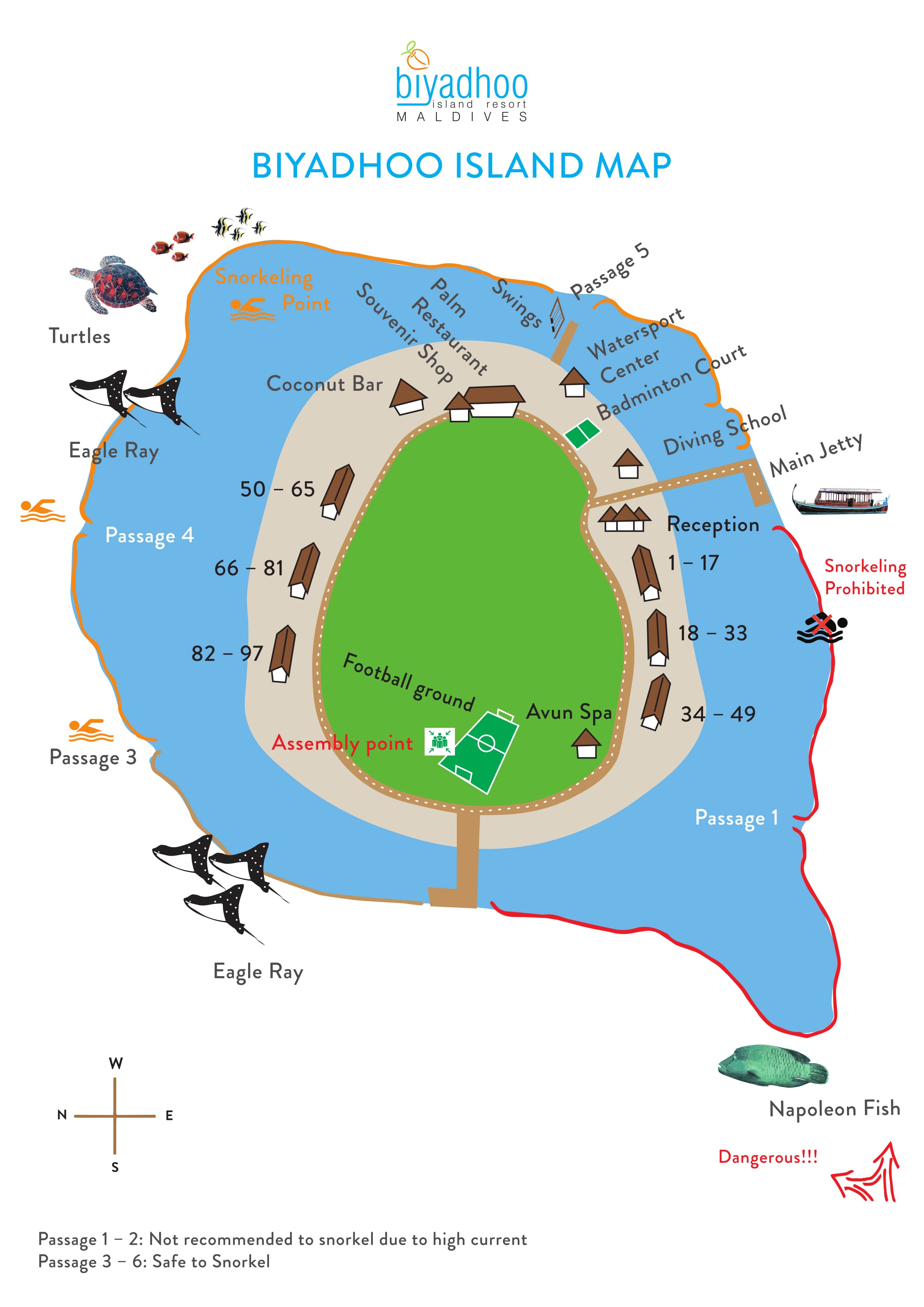 Курорт расположен в 30 км от международного аэропорта Велана (Velana International Airport), 40 минут на скоростном катере.