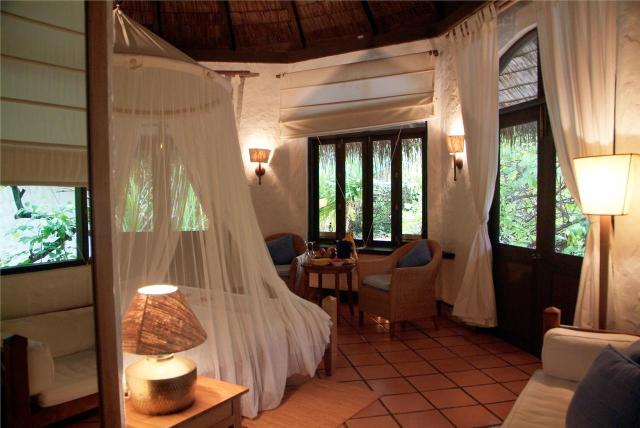 спальня с кроватью king-size и гостиной зоной, ванная комната открытого типа, тропический душ под открытым небом, фен, кондиционер, потолочный вентилятор, IDD телефон, сейф, мини-бар, набор для приготовления чая/ кофе, терраса с шезлонгами.