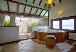 2 Lagoon Suite (152 м2) сьют над водой в лагуне, расположена в отдалении, к берегу доставляет персональная лодка дони; спальня с кроватью king-size с пологом и гостиной зоной, большая ванная комната с джакузи и видом на океан, душ на открытом воздухе, большая терраса с зоной отдыха и спуском в воду. Максимальное размещение: 2 взрослых