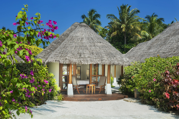 Уютные номера, коттеджи и виллы расположились под раскидистыми пальмами на белоснежном песчаном берегу и над прозрачными водами лагуны, окружающей остров.