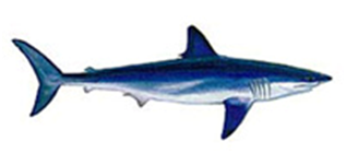 Hammerhead Shark (Акула - молот) Лучше всего ловить в августе и сентябре, но также можно поймать в течение всего года. Рекорд Маврикия - 312 килограммов. | Blue Shark (Голубая акула) Маврикию принадлежит мировой рекорд в классе 130-фунтовых удилищ с экземпляром в 180 килограммов. Попадается не очень часто. |