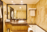 Пляжный курорт на берегу Персидского залива. Отель с компактной территорией, оформлен в традиционном арабском стиле и напоминает дворец с башнями. Помещения оформлены узорчатым орнаментом, в лобби расписной купол и колонны с подсветкой. Отель безалкогольный. Рядом с отелем мечеть.