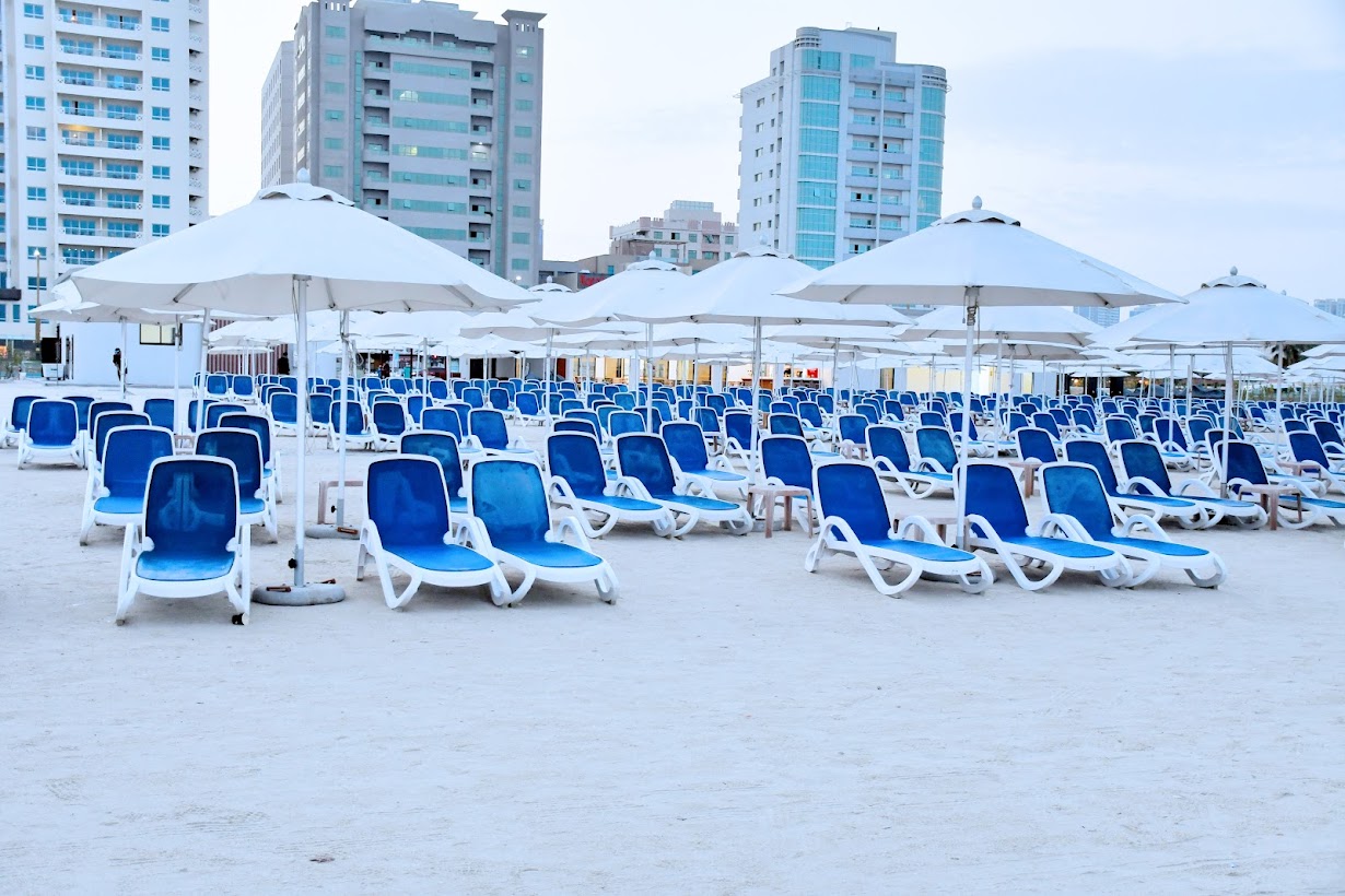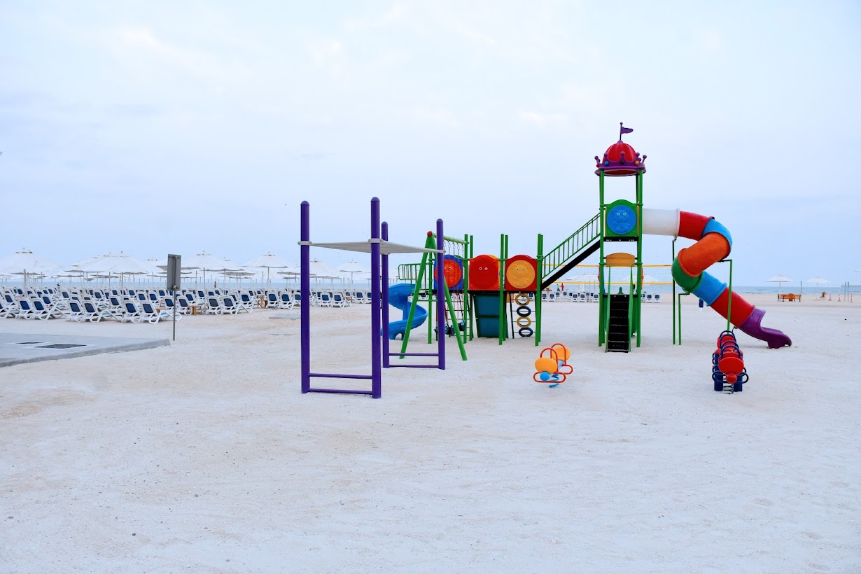 Инфраструктура: туалеты, душевые, раздевалки (отдельно для мужчин и женщин), просторная зона ресторана, детская игровая площадка, волейбольная площадка, новая закрытая зона ожидания (доступна по запросу для гостей, прибывающих из отеля Ramada Hotel & Suites by Wyndham Ajman на автобусе-шаттле).