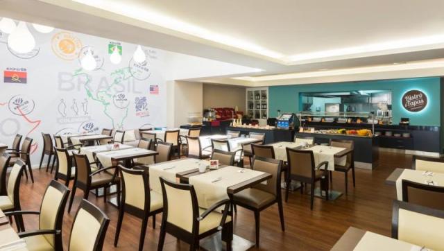 в новом ресторане сервируют завтрак, состоящий из блюд интернациональной кухни. Кроме того, осуществляется обслуживание по меню. Гости могут заказать блюдо дня по концепции сети Bistrô & Tapas