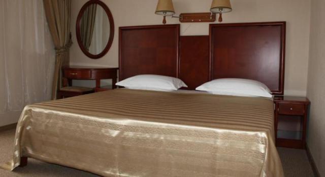 В самом центре г. Евпатория на пересечении двух центральных улиц - Ленина и Фрунзе - расположен этот гостиничный комплекс. После проведенной в 2009 г. капитальной реконструкции гостиница является не только архитектурным украшением города, но и одним из лучших четырехзвездочных отелей на юго-западном берегу Крыма, и соответствует самым высоким современным стандартам гостиничного обслуживания. Это находит отражение не только в изысканных интерьерах, ресторанах и великолепном бассейне, но, прежде всего, в высоком качестве обслуживания клиента и во внимании ко всем его нуждам. Дизайн отеля выполнен в дворцовом стиле, на этажах имеются мансардные веранды, отделенные от основного холла, на которых размещены столики и удобные кресла для отдыха.