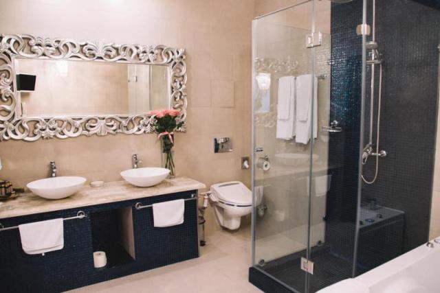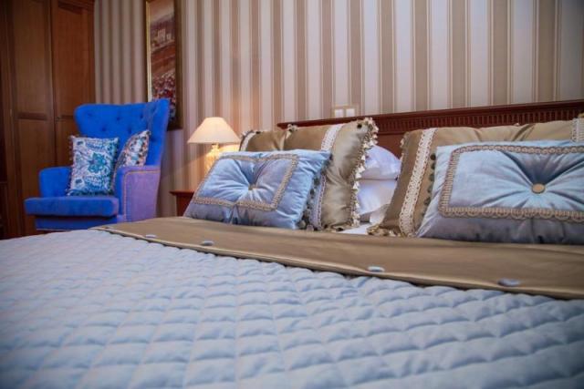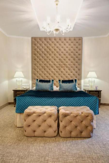 Джуниор Сюит Автор: 38 м2. Двуспальная кровать, письменный стол, журнальный столик, стулья, гардеробная комната. Просторная ванная комната с ванной джакузи и отдельной душевой кабиной, биде
