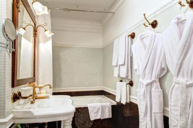 Джуниор Сюит: 38 м2. Двуспальная кровать, письменный стол, журнальный столик, стулья, гардероб, мягкая мебель. Просторная ванная комната с ванной и биде
