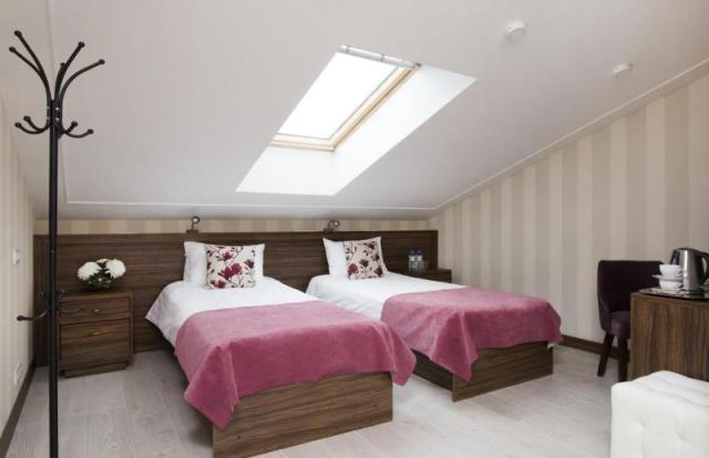 Небесный номер (20 - 25 м2): мансардный номер с видом на небо и крыши города. 1 двуспальная или 2 односпальные кровати. Максимальное размещение 2 чел.