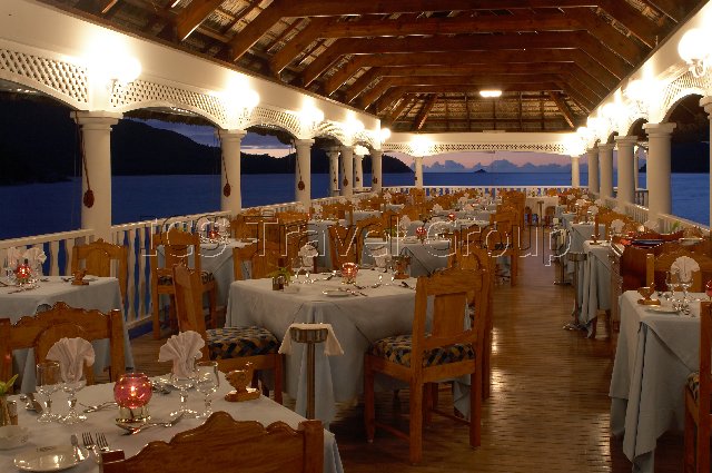 всего 14 бунгало, большинство из которых расположены на берегу, с видом на море: 4 виллы с видом на залив, построенных в национальном стиле, 8 вилл с видом на море и 4 Suite, стоящих прямо на берегу; 2 ресторана креольской, европейской и китайской кухонь, бар, разнообразные анимационные программы, вечера танцев, морские прогулки днем и на закате, тематические вечера, бассейн, теннисный корт, лодки-такси, каноэ, снорклинг, аренда велосипедов, дайвинг, рыбалка, бутик; для молодоженов подарок отеля - обед из морепродуктов с вином