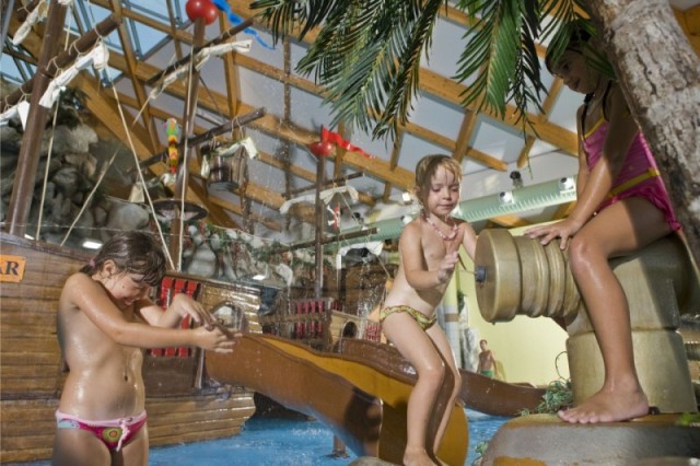 А когда прохлада осени даст о себе знать, водные забавы останутся с вами в зимней Термальной ривьере. Укротите строптивую волну на дорожке для серфинга, спуститесь по водным горкам "трамплин" и "камикадзе"! А малышам наверняка понравится сказочный уголок с пиратским фрегатом.