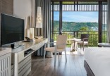 Family (60 м2): номер с домашней атмосферой, расположенный рядом с бассейном для детей и детским клубом, включает спальню, отдельную комнату для детей с двухярусной кроватью и игровой приставкой, балкон с дополнительной кушеткой для отдыха; максимальное размещение 2 взр. и 2 ребенка