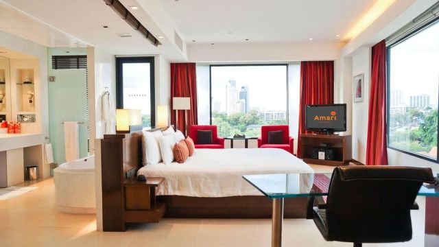 Отель находится на границе центральной и северной частей города, через дорогу от моря. Расположение отеля позволяет добраться до основных торгово-развлекательных центров за несколько минут. Отель входит в известную цепочку отелей Amari, что дает гарантию высокого уровня сервиса.