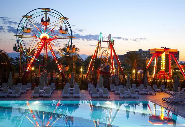 анимация, 2 бассейна, водные горки, мини-клуб (4 – 12 лет), услуги няни ($), мини-дискотека, луна-парк