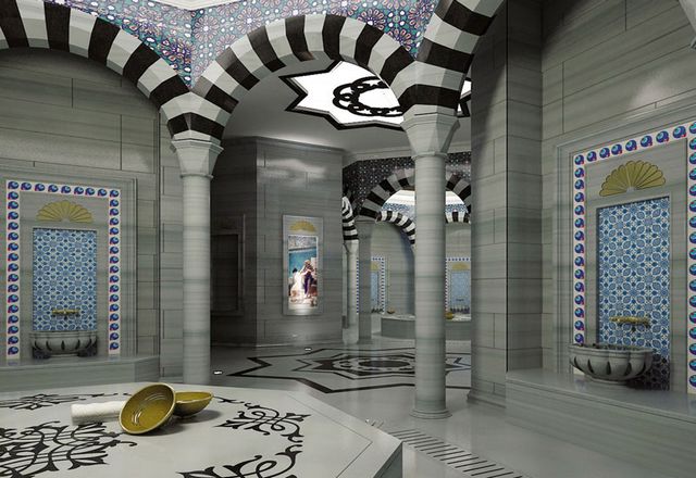 в Османском стиле, со всеми традициями, богатством и роскошью Востока - снежная комната, парная, сауна, ледяной бассейн, аромадуши, центр красоты (5 лечебных кабинетов), 1 массажная комната, массажная комната для семейных пар, 2 VIP-массажные комнаты, джакузи, VIP-турецкая баня, турецкая баня, комната отдыха, VIP- комната отдыха в Османском концепте, фито-бар (фито-чаи и прохладительные напитки)