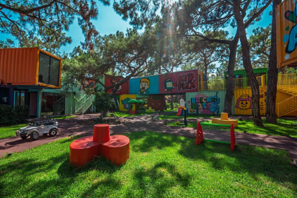 Мини-клуб (3-17 лет), клуб для подростков, детская коляска, детская кроватка, детский стульчик, игровые площадки, образовательные программы, мастерская по работе по дереву, мастер классы, мастерская по керамике природы, кулинарная мастерская, программирование Lego Robotics, танцевальные курсы, художественная мастерская, научная мастерская, Playstation, кинозал, спортивные мероприятия и др.