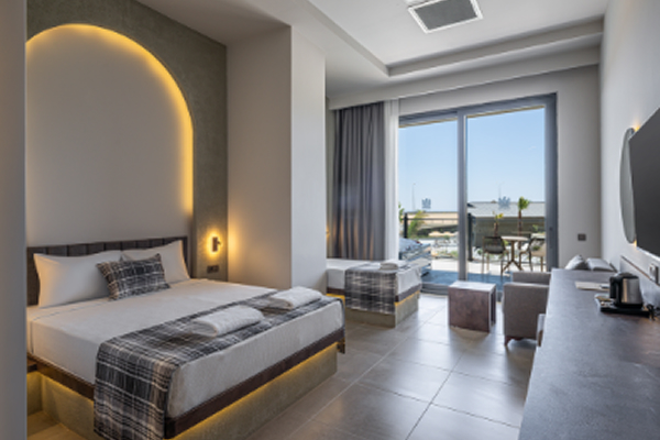 STD Sea View Room (30 м², макс. 3 взрослых + 1 ребёнок, балкон и терраса).