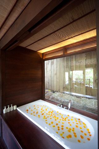 Lagoon Villa (120 м2): одноэтажные отдельно стоящие виллы с видом на бассейн - лагуну и море; отдельная гостиная, спальня с кроватью king-size, закрытая ванная комната с душем, открытая ванная комната с душем и ванной, балкон, терраса с бассейном; максимальное размещение 2 взр. и 1 доп. место