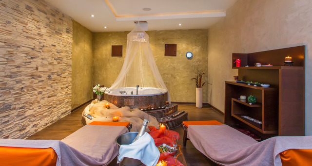 закрытый бассейн, солярий, сауна, парная баня, джакузи, массаж (€), зона отдыха, различные процедуры для лица и тела (€)