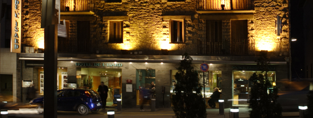 Отель расположен в коммерческом центре Андорра ла Велья и представляет собой 6-этажное здание в старинном стиле, идеально гармонирующее с архитектурой города. Напротив находится крупнейший в Андорре торговый центр Pyrenees. По качеству отделки номеров и уровню обслуживания De L’Isard не уступает многим четырехзвездным отелям. Еще одно его преимущество – великолепная кухня.