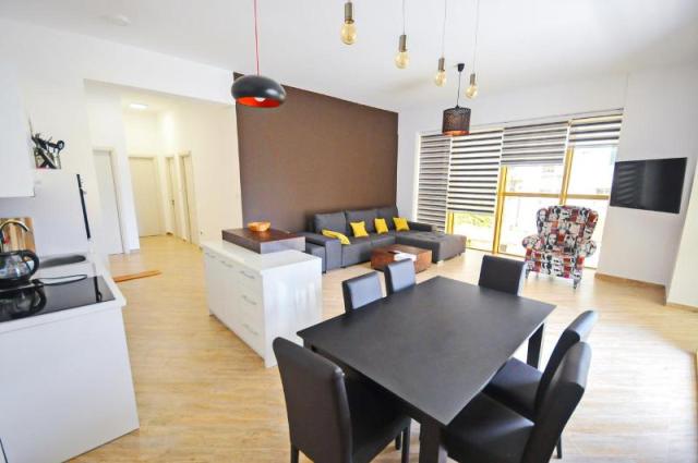 4+2 App (60-70 м2): кухня с баром и обеденной зоной, 2 ванные комнаты, гостиная с раскладным диваном-кроватью (для 2х человек); гостиная имеет выход на балкон с видом на город; одна спальня с кроватью "king-size", вторая спальня с двумя односпальными кроватями. Максимальное размещение до 6 чел.