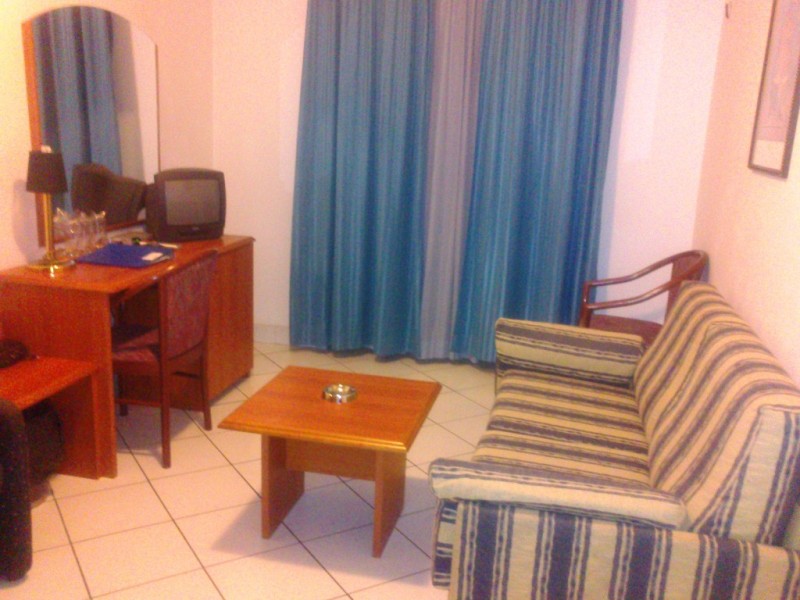250 м от отеля, муниципальный, мелкая галька, песок; зонты и лежаки у бассейна – бесплатно, на пляже - €