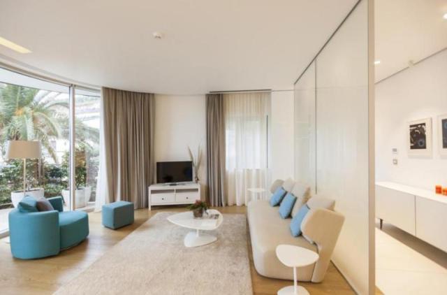 Просторные и комфортные открытые планировки интерьеров, являющиеся визитной карточкой отеля, разработаны в соответствии с высочайшими мировыми стандартами. Апартаменты выполнены с применением исключительно высококачественных материалов и отделаны фурнитурой от самых надежных европейских брендов. Комплекс разделен на три тематические линии – Sea Side, Garden, Sunny Hill.