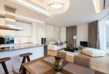 One Bedroom Residence (80 - 110 м2): спальня с французской кроватью, просторная гостиная с раскладным диваном, оборудованная кухня с обеденным уголком, ванная комната, терраса с лежаками; максимальное размещение – 3 взр.